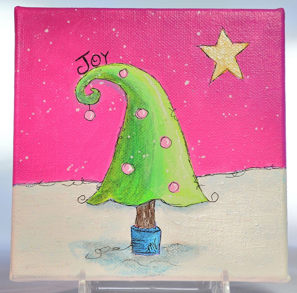 This is a new mini whimsical painting I made for Christimas. It’s a 5 inch square canvas that’s 3/4″ inches thick and it’s painted with acrylic paints. It’s a little big to be an ornament but is great for some holiday cheer.