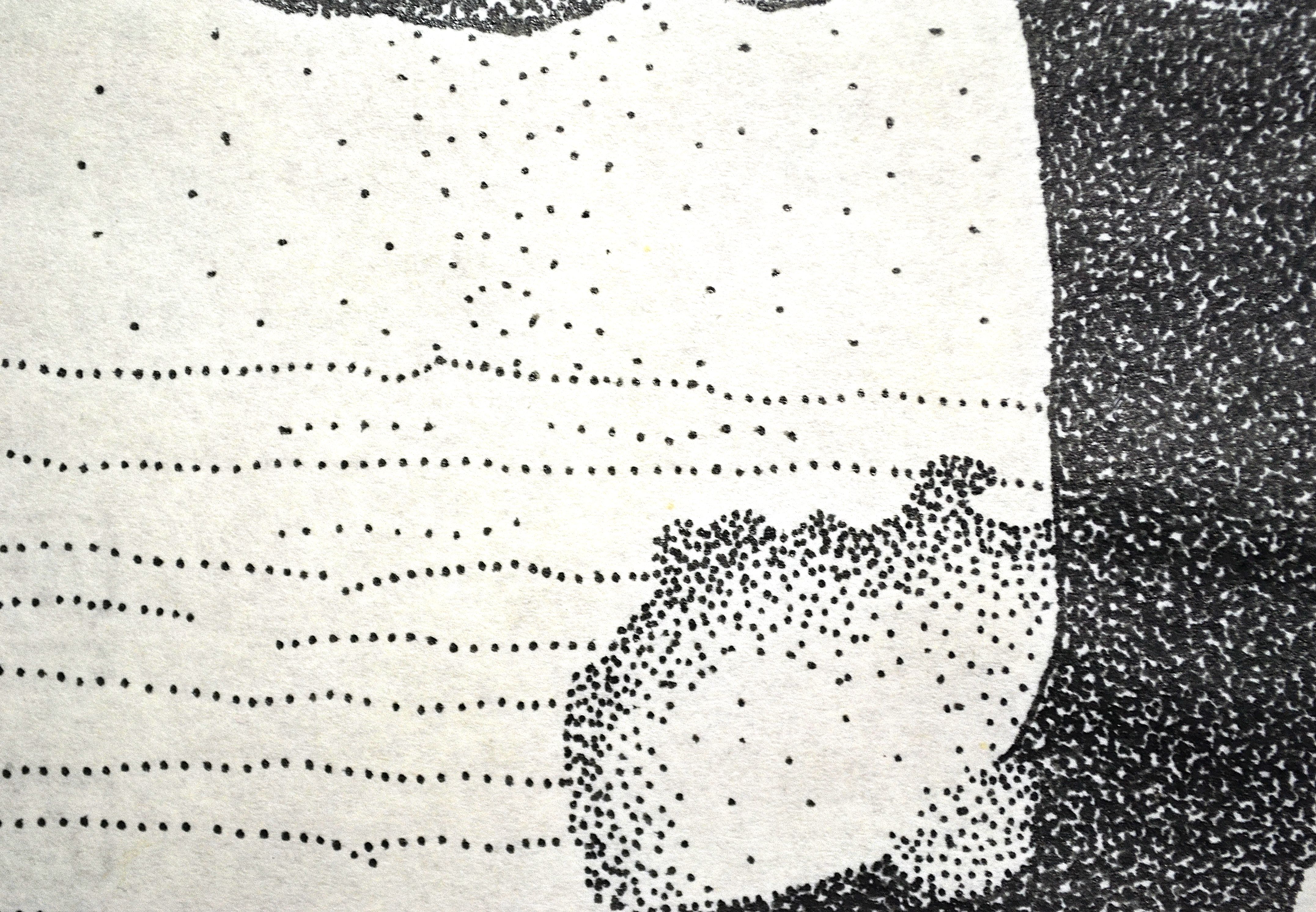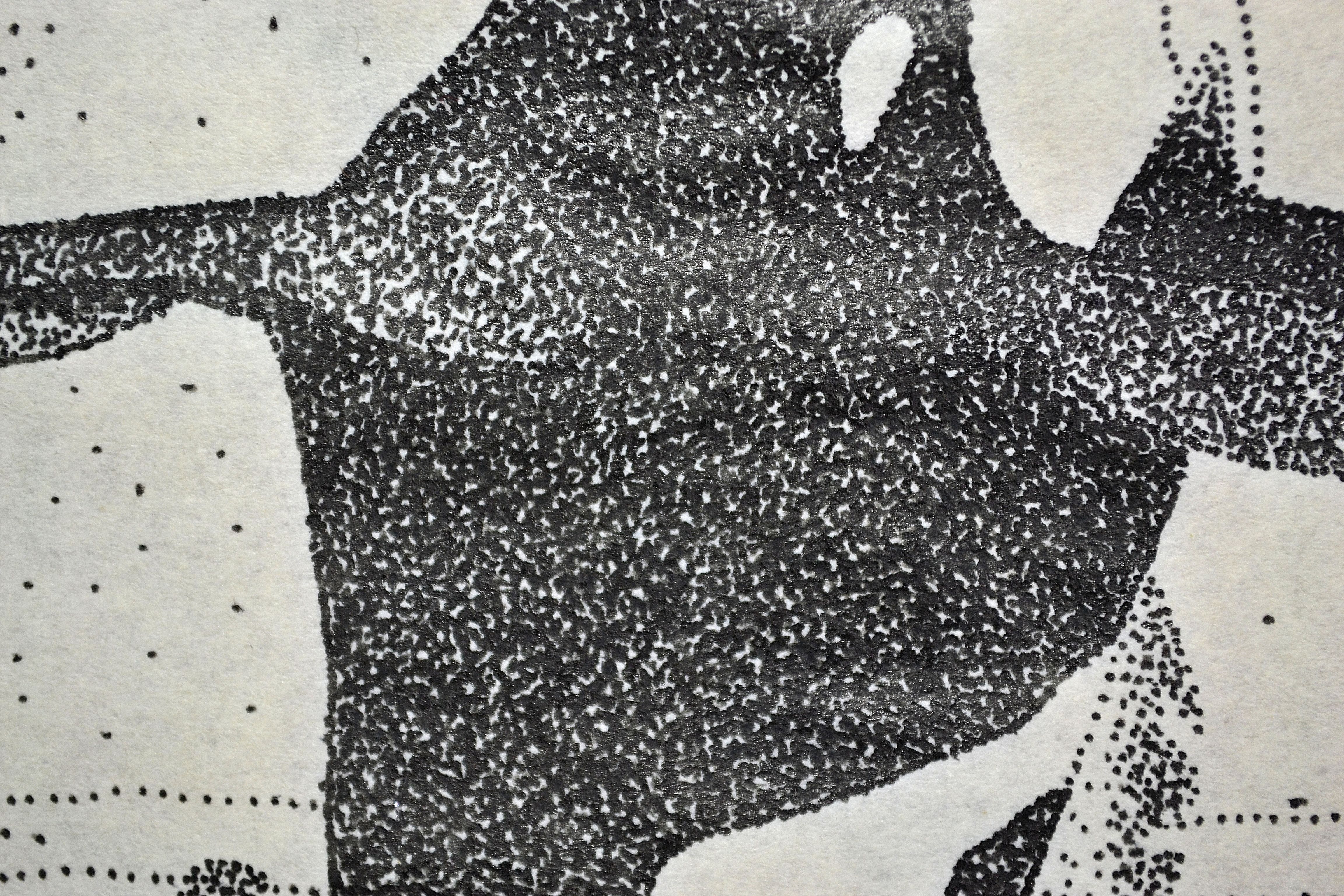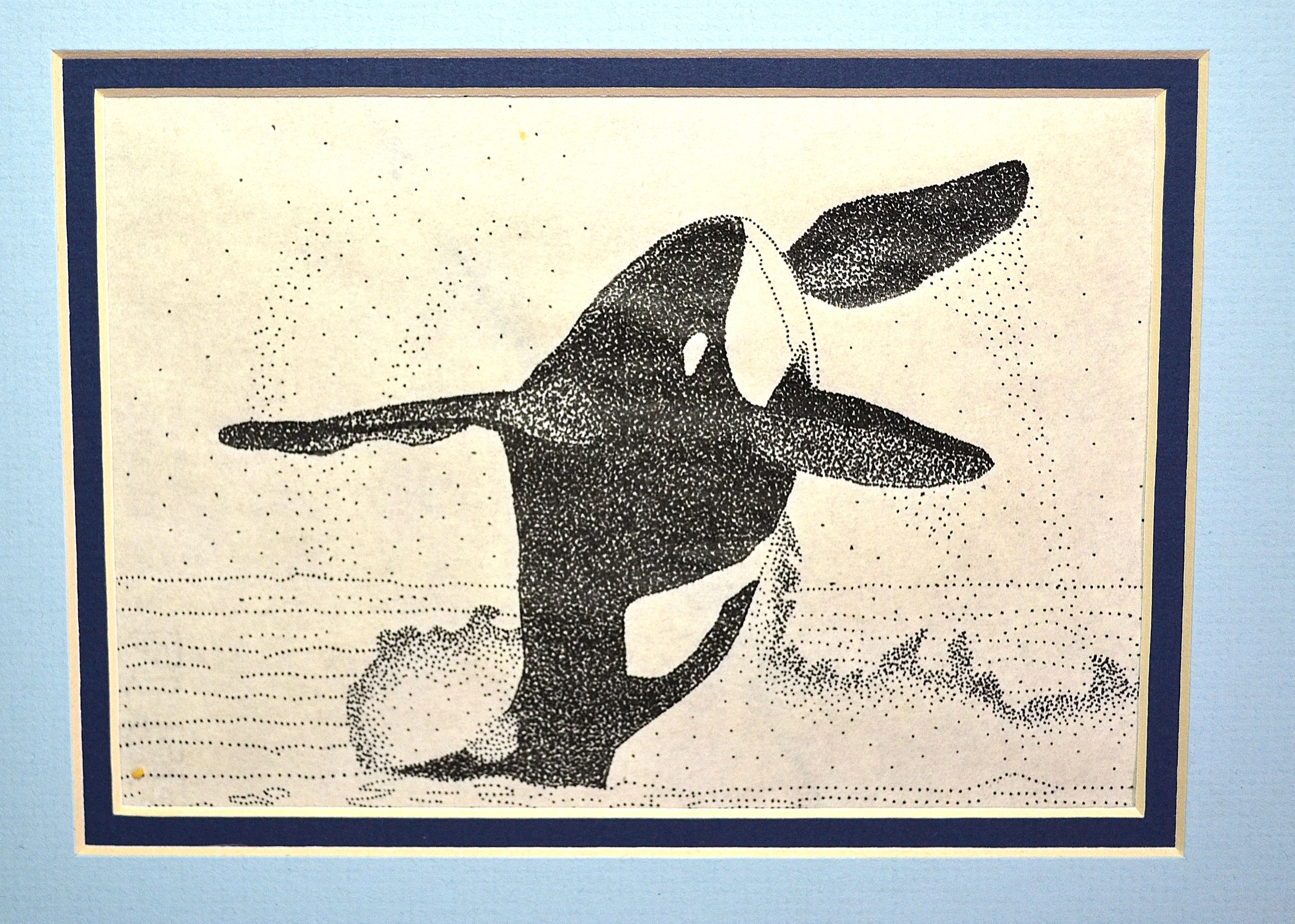 I loved this technique so much that I decided to give it a try. So I created this 5×7 inch Killer Whale image using a black fine tipped pen on paper. It was very tedious and my hand became pretty sore after just a short while. The entire image took me about a week to complete but l couldn’t imagine doing a very large painting like Seurat’s which measured 81.7×121.25Β inches and took 2 years to complete. I think my hand would fall off π