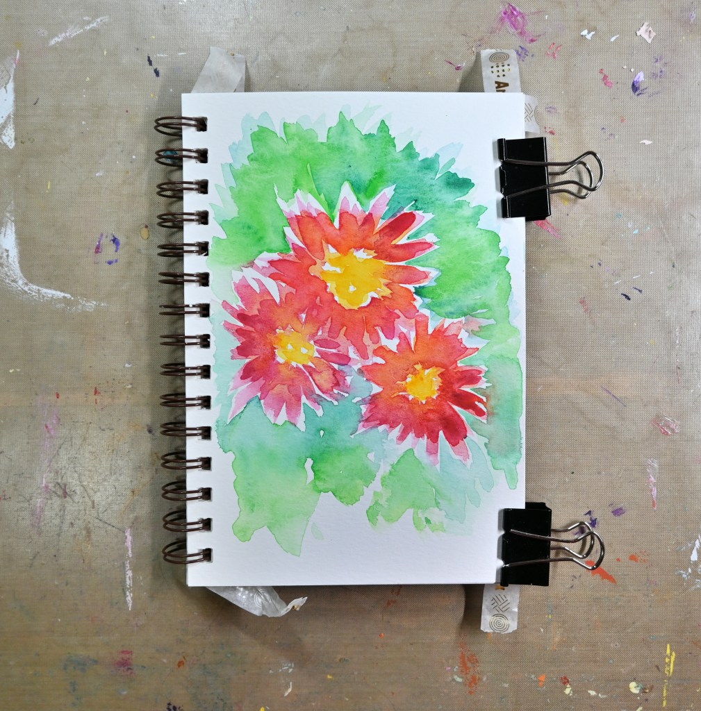 As for this piece, it came from a place of play. No pressure, no rigid plan—just colors, shapes, and curiosity. It lives somewhere between abstract and impressionism, and I kind of like that it doesn’t fully commit to either. The florals feel loose and expressive, and the bold reds, warm yellows, and fresh greens felt absolutely perfect for the season. It was one of those sessions where experimenting was the whole point, and the joy was in seeing what would happen next.