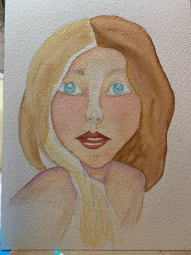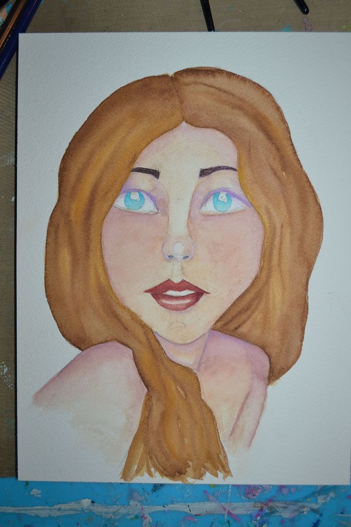 Dick Blick Art Supplies was hosting a watercolor contest so I thought it was a good opportunity to practice my portrait painting skills. I worked on her for some time and this was my entry into the contest. I named her “Crystal” because of her crystal blue eyes.