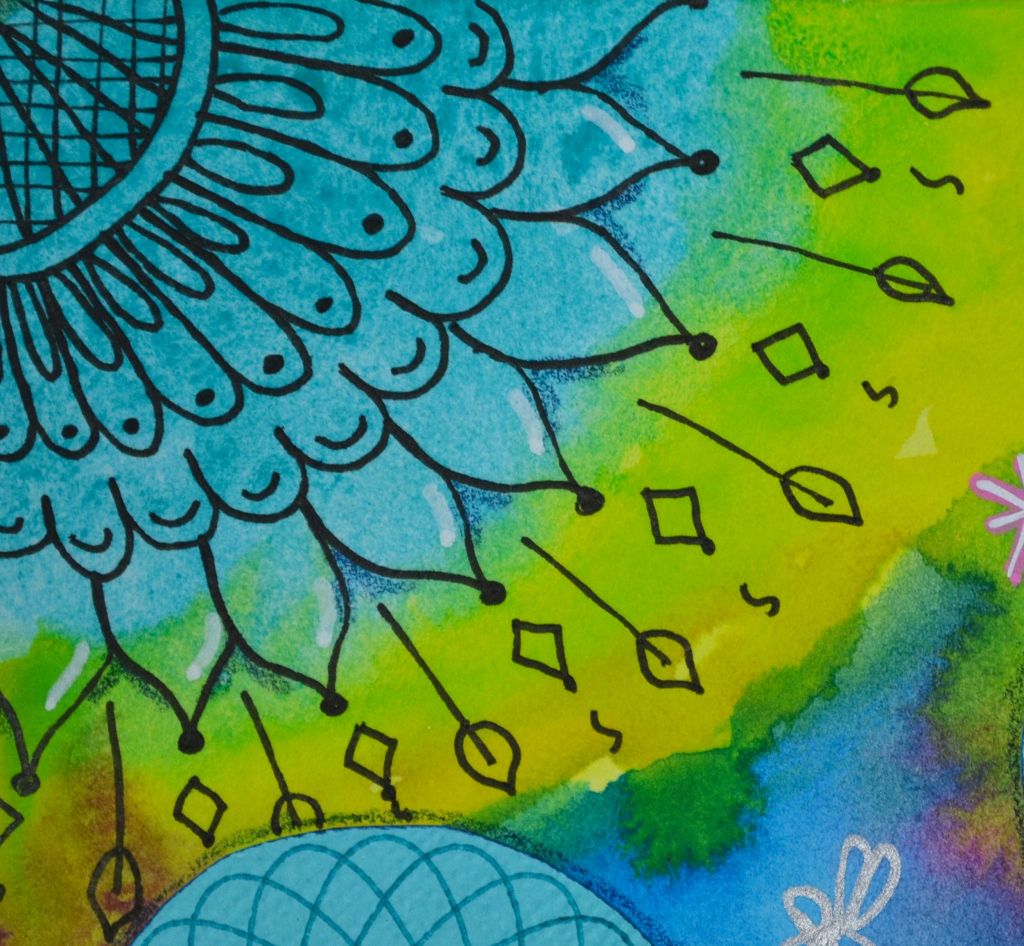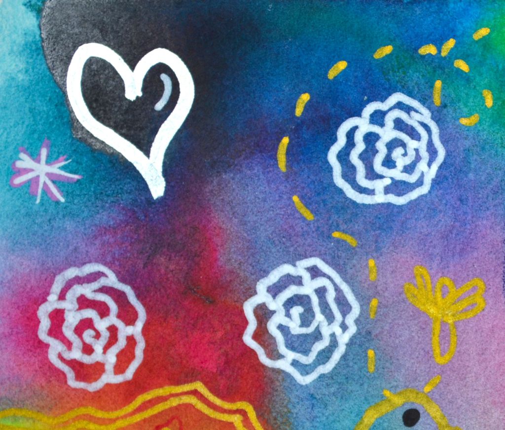 - Paint your background in your favorite acrylic paint. Allow the torn pieces of paper to show through the paint a little. Let dry.