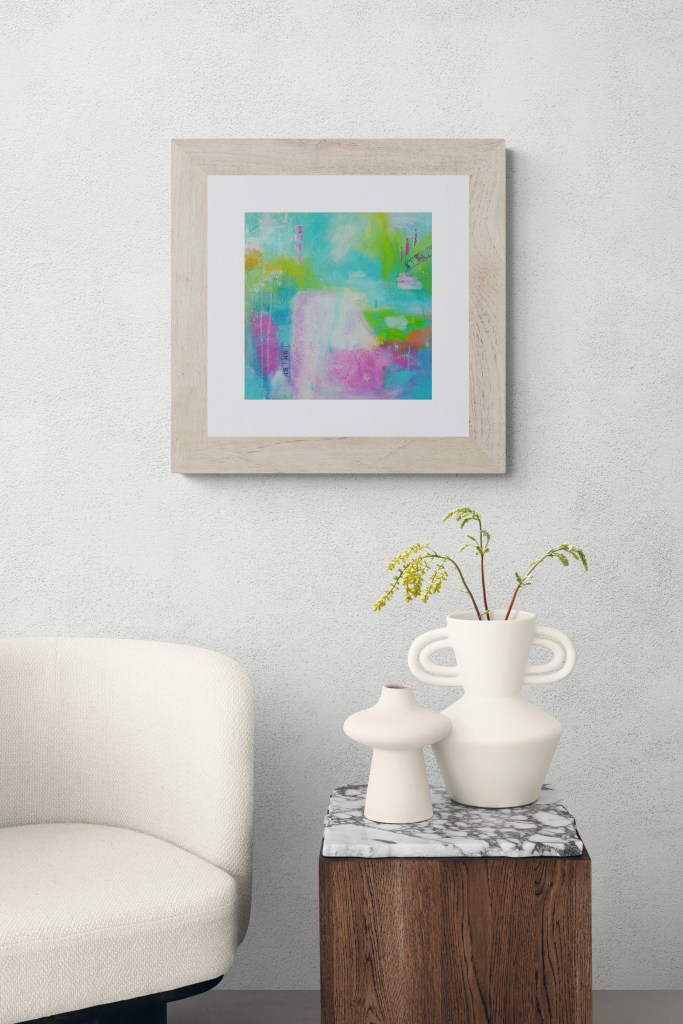 This is my latest Giclee Print available in my Etsy Shop, “Tropical Fusion.” I love the calming blues and greens, but especially the pops of yellow and pink in the corners. What’s your favorite part?