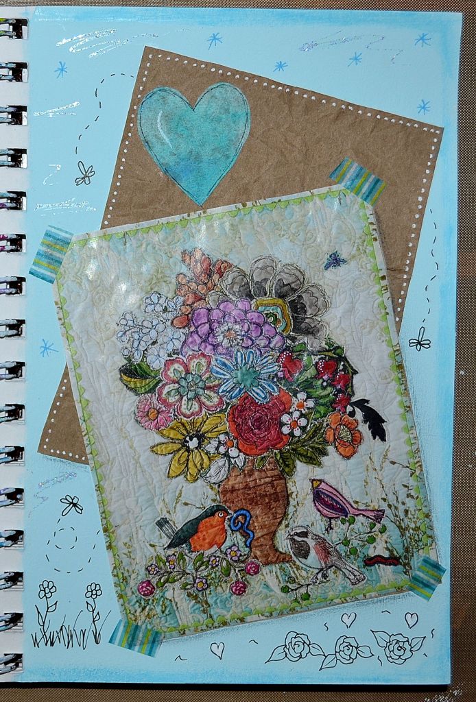 I’m not a textile artist but I look in awe at the quilts others make. I came across these photos in Quilting Arts magazine and decided to make journal pages from them. These were images of quilts created and designed by Jean Impey. They were simply stunning!