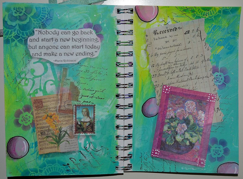 I just got some new artsy ephemera in the other day and thought I’d use it for this layout. I found this quote by Maria Robinson that resonated with me “Nobody can go back and start a new beginning, but anyone can start today and make a new ending.”