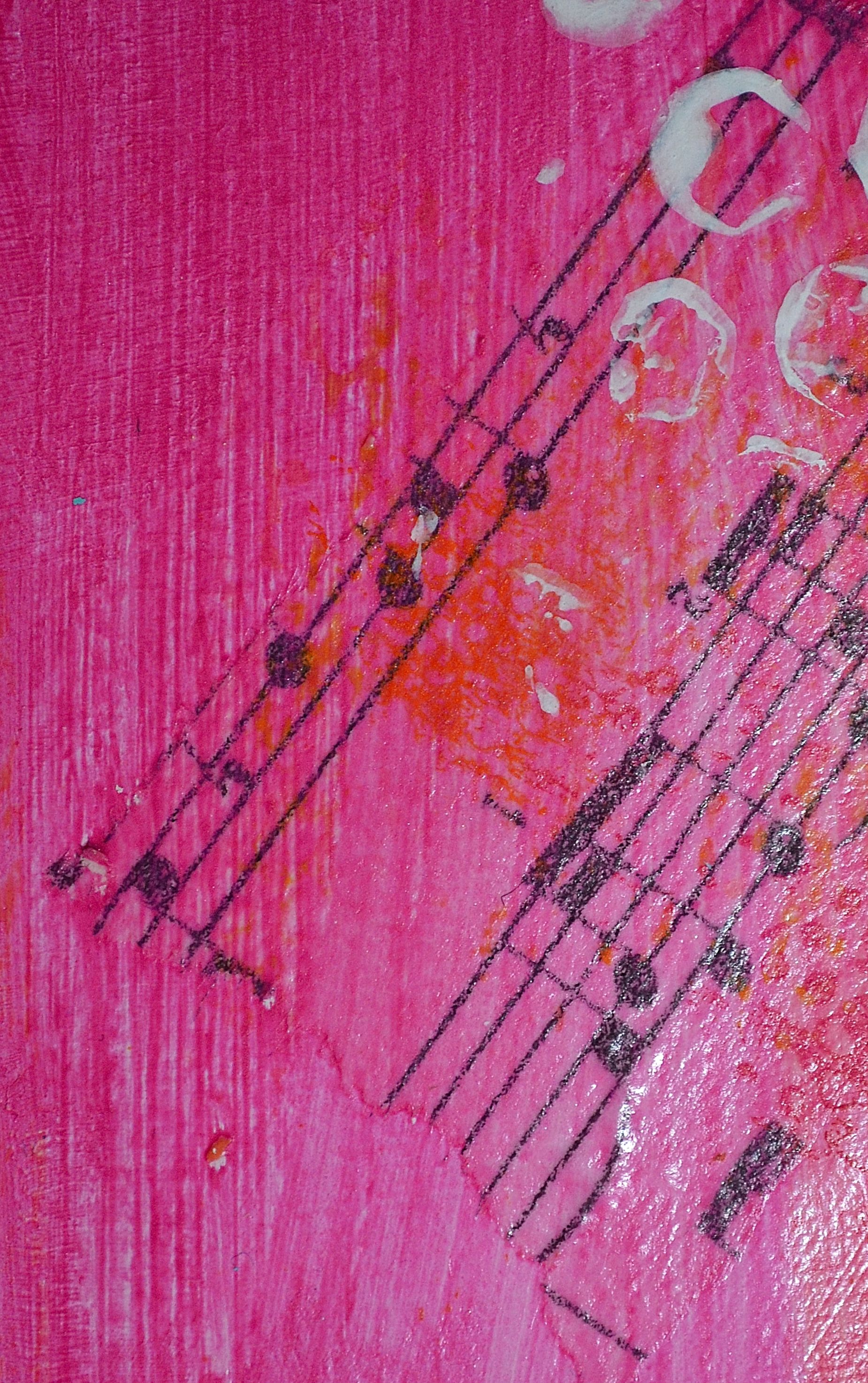 It was a pretty simply layout that I started with collaged pieces of printed tissue paper by Tim Holtz for the background. I lightly painted over them with pink and orange acrylic paint making sure you could still the collaged papers peeking through.