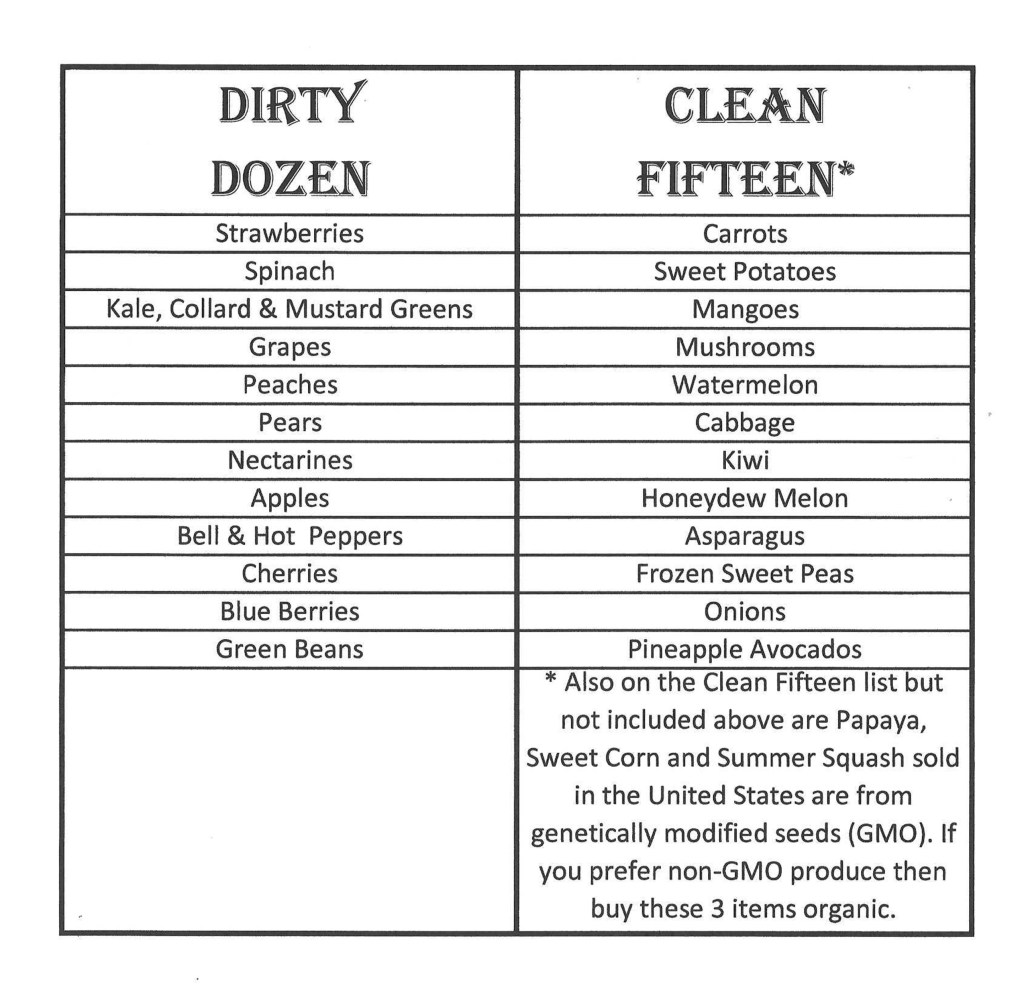 The Environmental Working Group (EWG) publishes two primary lists every spring, the “Dirty Dozen” which is safest to buy organic and the “Clean Fifteen” which is safest to buy conventionally.