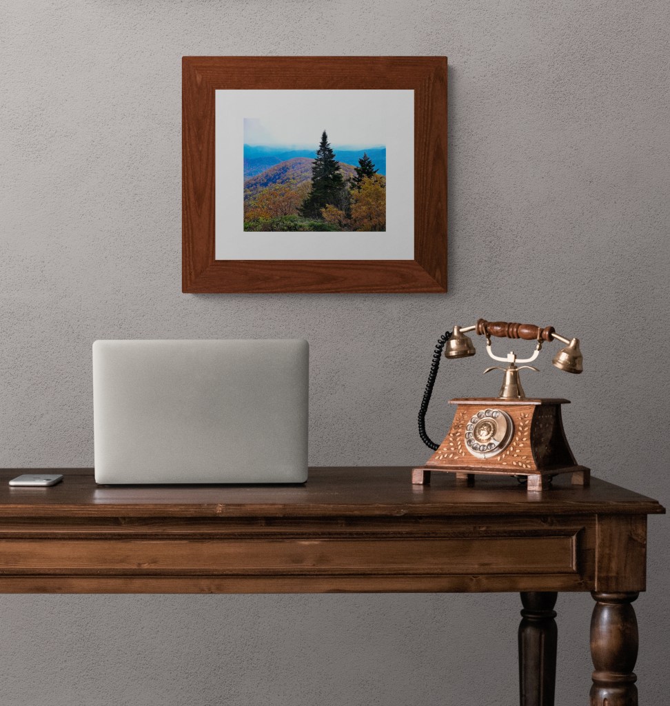 I’m thrilled to share a new gem from my photography vault—a stunning wall art print of Hogpen Gap along the Appalachian Trail near Helen, Georgia. With a vibrant blue sky and tree branches framing the scene, this image captures the serene beauty of the mountains, bathed in the rich hues of peak autumn foliage.