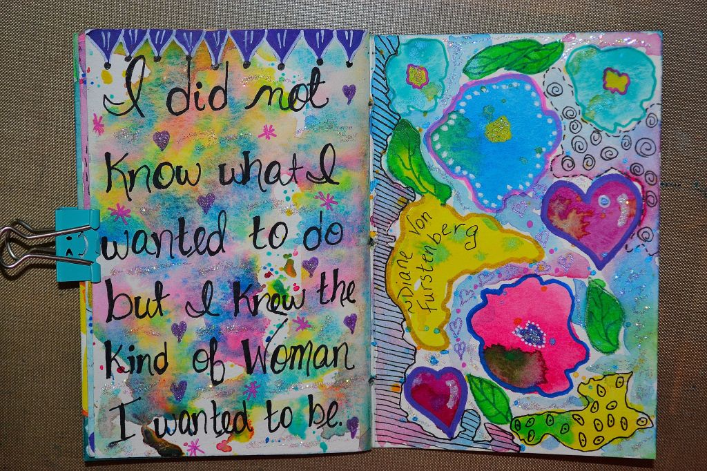 I hope your weekend is off to a good start! I’ve been working in my mini 3″ x 4.5″ journal. I have 2 more pages to go and then it will be finished. I found this inspiring quote by Eleanor Roosevelt and thought it was a good fit for this journal: