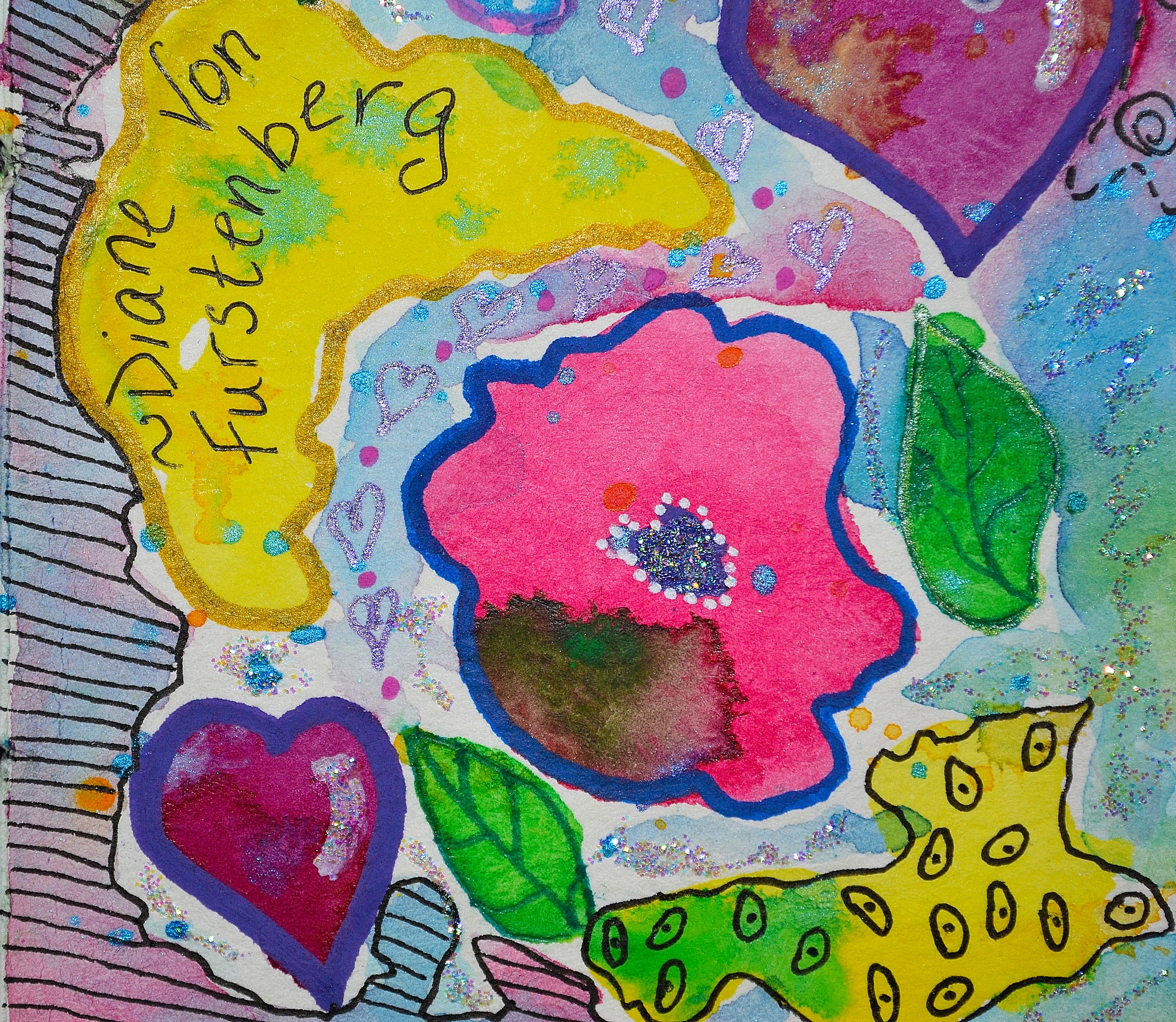 I painted it with watercolor paints and outlined the design with a Sakura Micron 01 Pen. I added some highlights and shading and finished it off with a little glitter for bling.