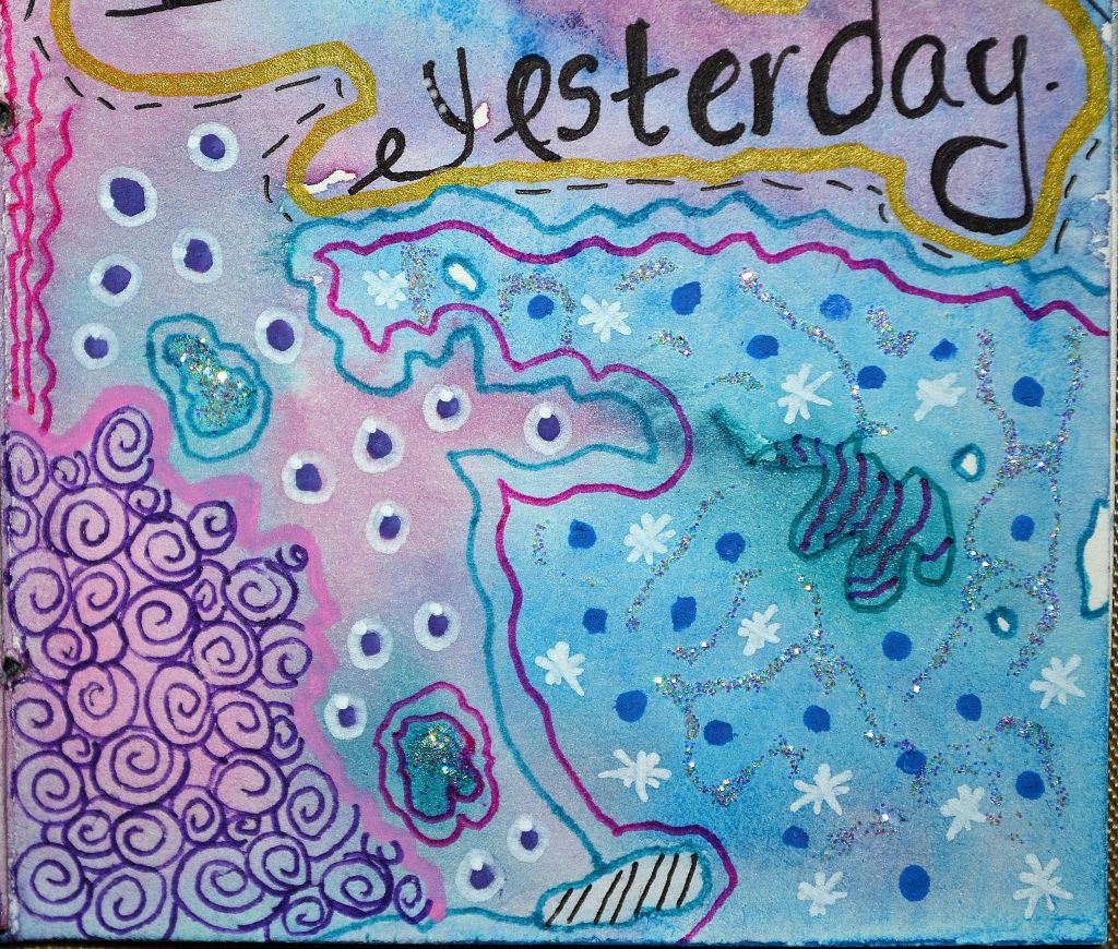 I painted the background with black acrylic paint and made a few zentangle tiles. I drew in a few doodles and added a quote from Lau-Tzu: “Kindness in words creates confidence. Kindness in thinking creates profoundness. Kindness in giving creates love.”