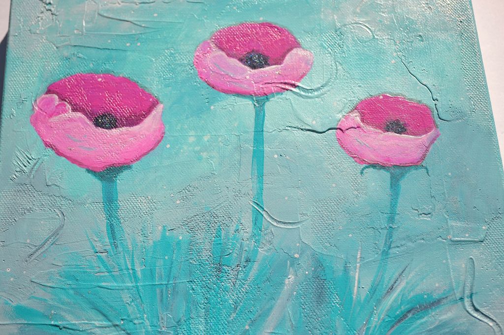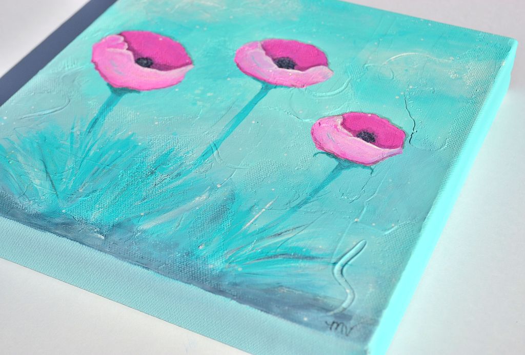 I started this painting with something completely different in mind but couldn’t stop thinking about beautiful blooms. So here it is, Flourish. It’s painted on a 10×10 inch canvas with vibrant and happy colors of blue and pink. It has lots of texture and of course a little glitter for some magic. Flourish is available in myEtsy shop. I have more coming so stay tuned…