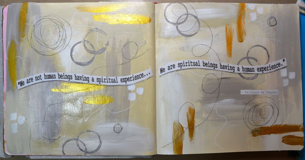 This was a little challenging because I love my bright, fun colors. I painted an abstract and added a quote by Teilhard de Chardin “We are not human beings having a spiritual experience… We are spiritual beings having a human experience.”