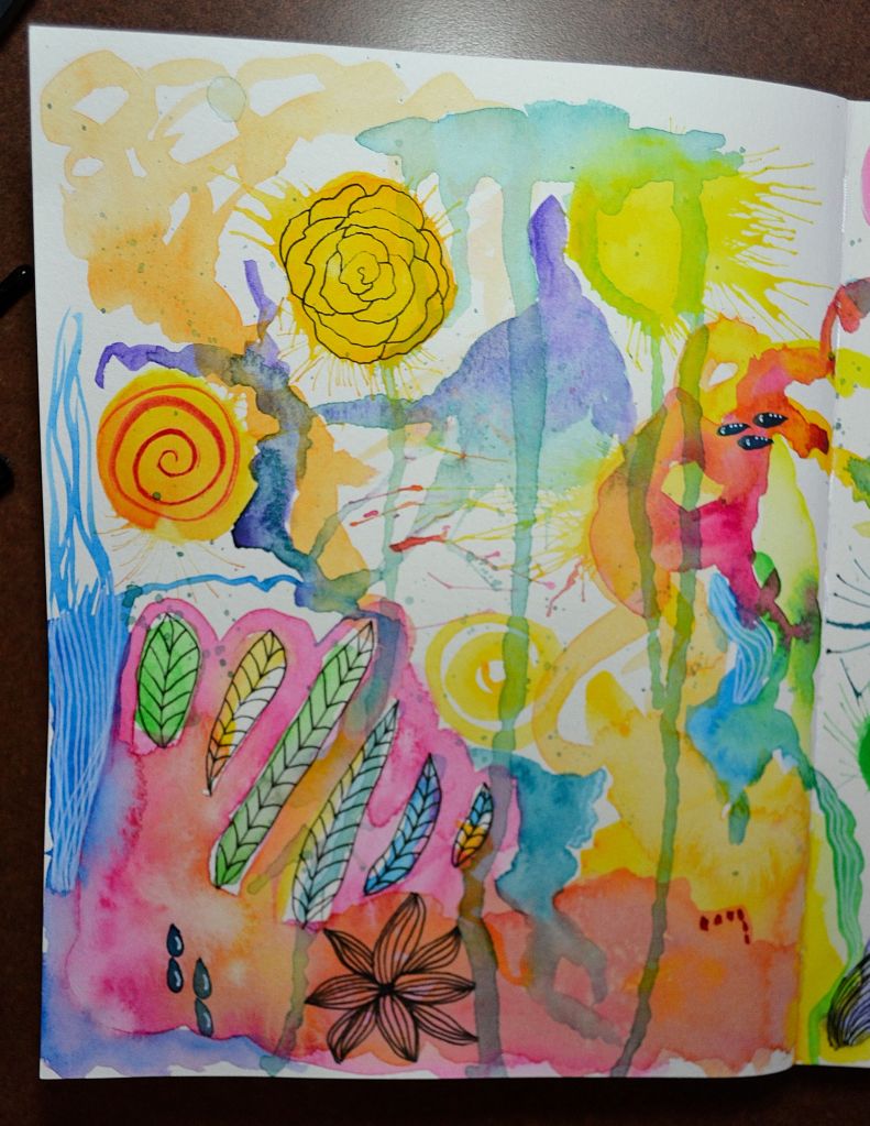 I do a little prep work before the trip like cutting the watercolor paper into varying sizes. Then I’ll splash paint on a handful of tiles while leaving the rest plain. That’s it! When you have a little spare time, you can create some really interesting and fun pieces of art. There’s no mess and it all easily fits into your purse or bag. I love bringing minimal supplies and creating on trips because it helps to keep the creativity flowing😊 Plus this would also be a great idea for kids to use their creativity on trips!