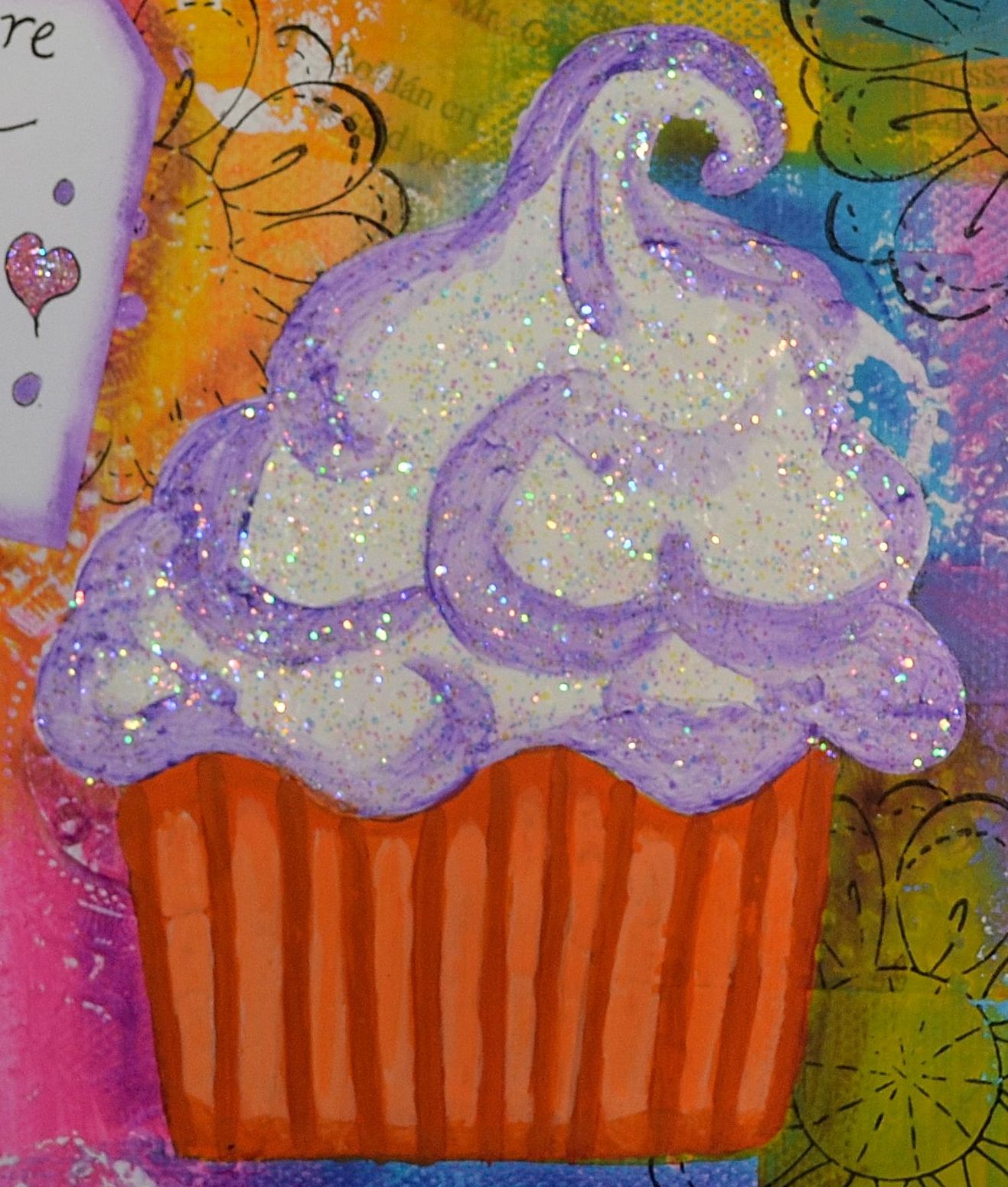 It’s fun to see where your art ends up because when I made this I started with my cupcake stamp and it grew into a stack. There wasn’t a lot of planning involved but rather going with the flow. So when you’re journaling and leery of the blank page, just start even if you only add a few scribbles. The important thing is to start and let your creative muse take over and have fun!!