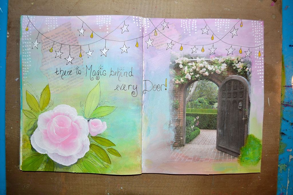 I had a bit of fun over the weekend and created this in my Strathmore 7.75×9.75 inch Watercolor Journal. I painted it mostly with acrylic paints but what I love about using a watercolor journal is the thick 140lb paper which stands up well to just about anything. I have thoughts I journaled on the first layer followed by watercolors, then decoupage, gesso and acrylic was the last layer.