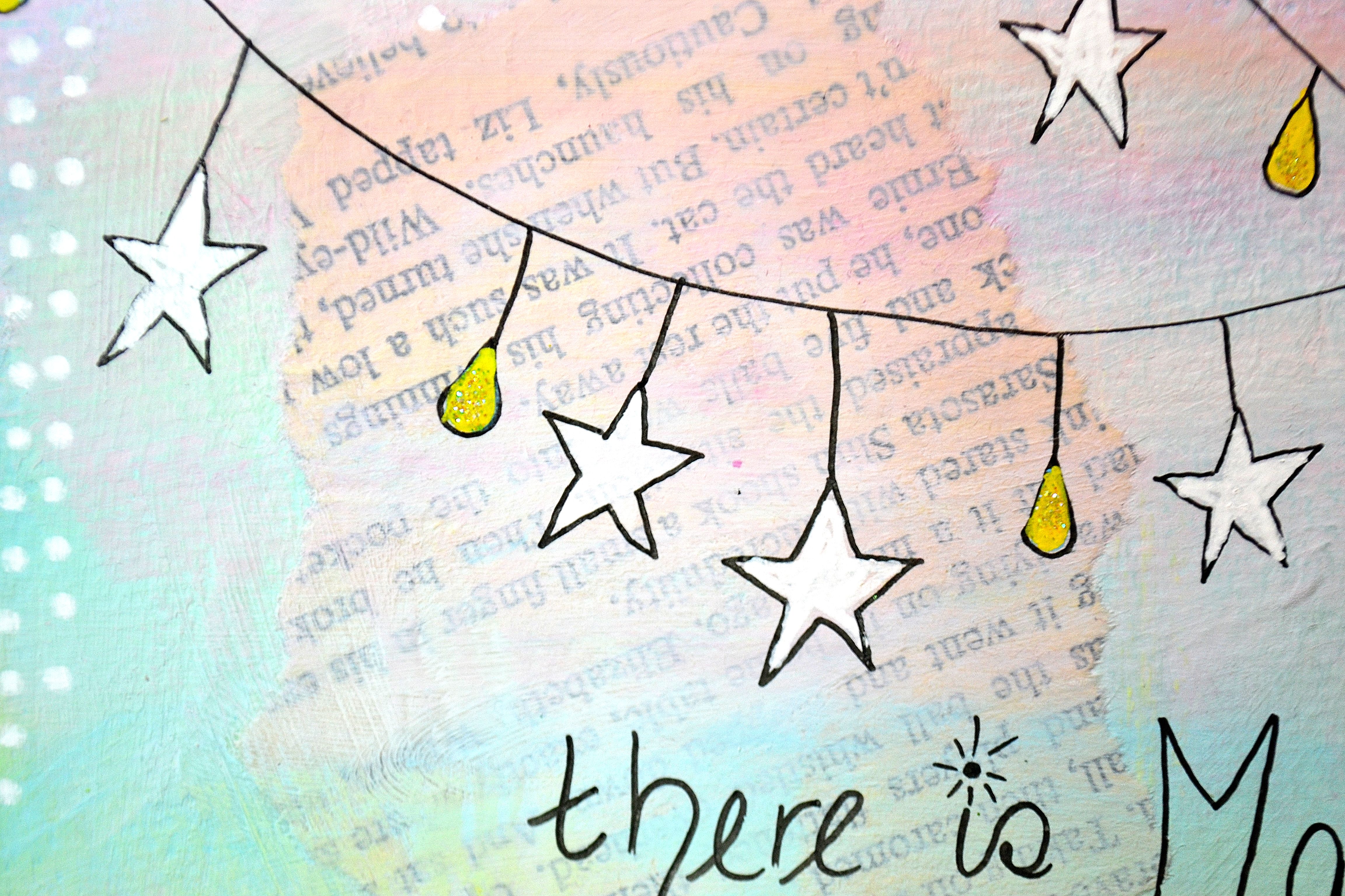 There are lots of layers and texture. Plus I added a quote which reads: “Sometimes to move forward we must face our innermost darkest fears.”