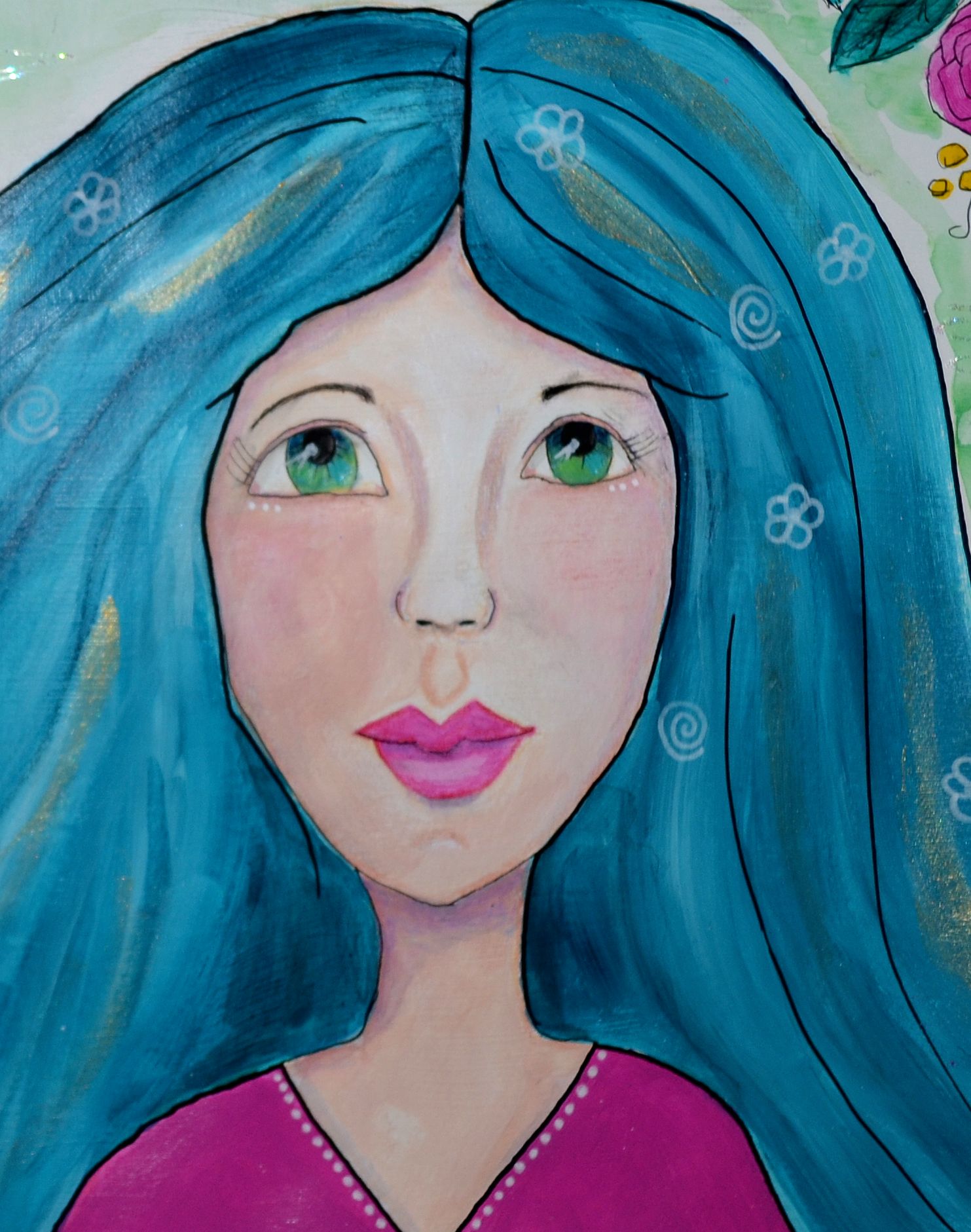 I did a sketch first and then painted everything but wasn’t happy with it because it looked too plain. So I ended up adding splashes of color. I finished it off with a little shading using a colored pencil and pen plus glitter for sparkly magic.