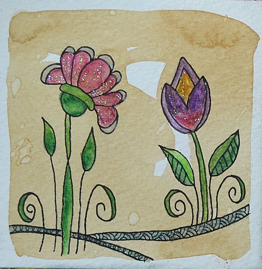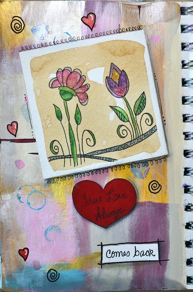 It’s fun to see where your art ends up because when I made this I started with my cupcake stamp and it grew into a stack. There wasn’t a lot of planning involved but rather going with the flow. So when you’re journaling and leery of the blank page, just start even if you only add a few scribbles. The important thing is to start and let your creative muse take over and have fun!!