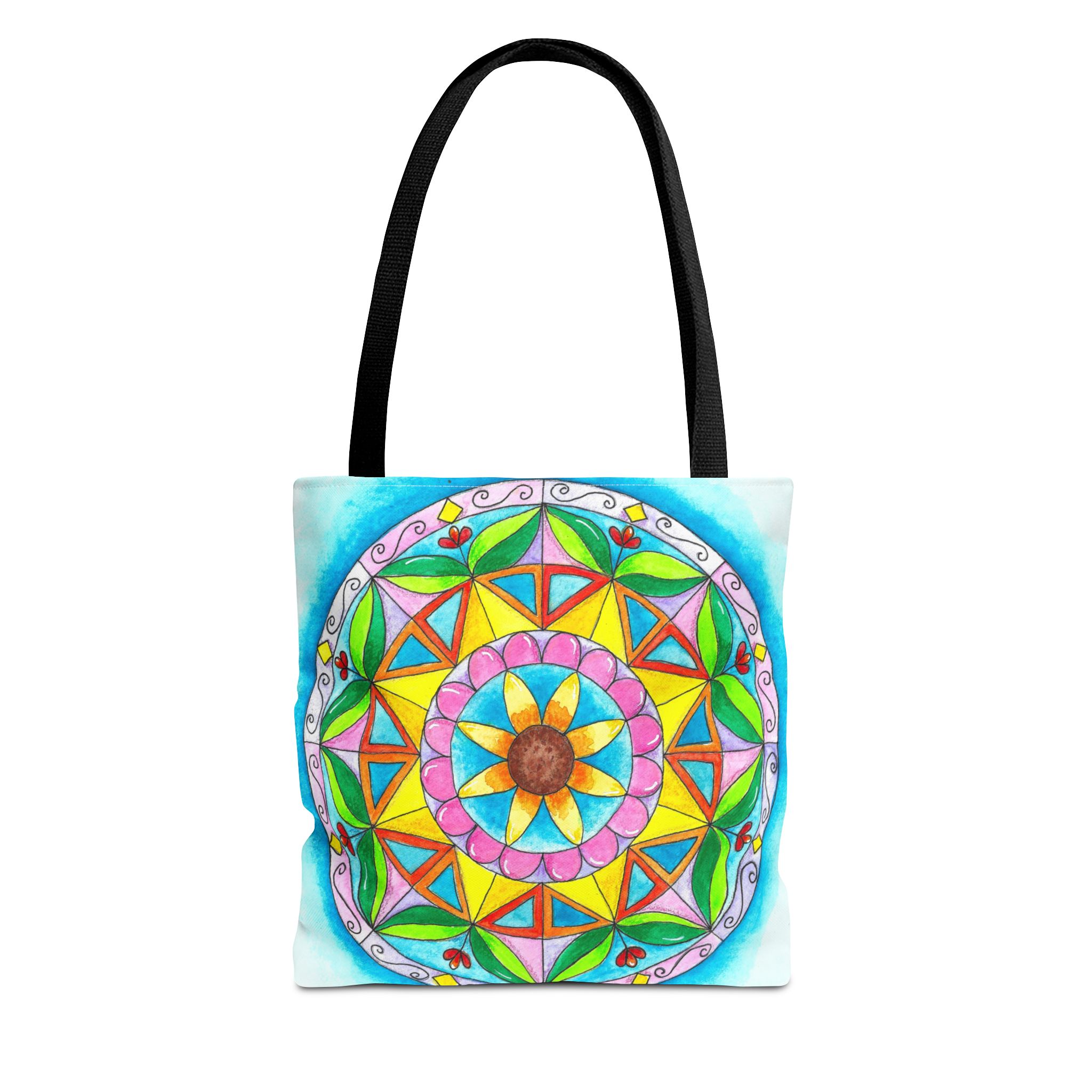 I’m trying something new! Instead of printing my artwork on both sides of my latest art totes, I thought—why not add a little inspiration? Imagine a beautiful sunflower mandala on one side, and an uplifting quote on the other. A dose of happy and a spark of wisdom, all in one!