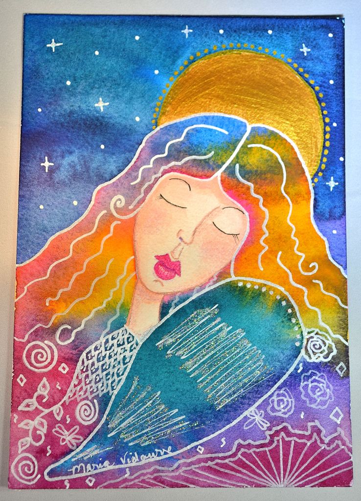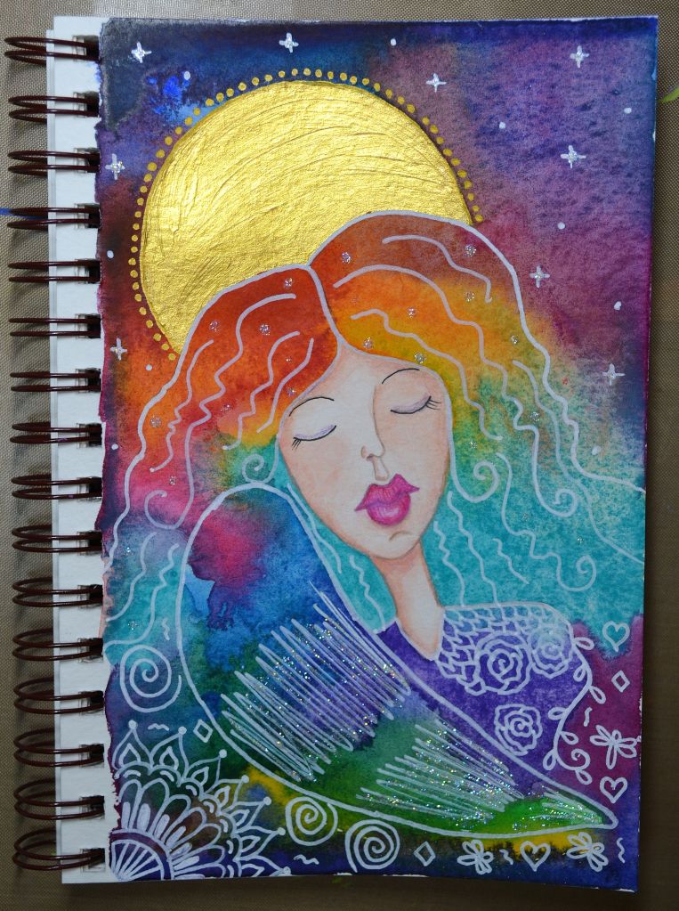 This is my newest angel in my Strathmore 5.5″ x 8.5″ Watercolor Journal called Bliss. I hope you like her 😊