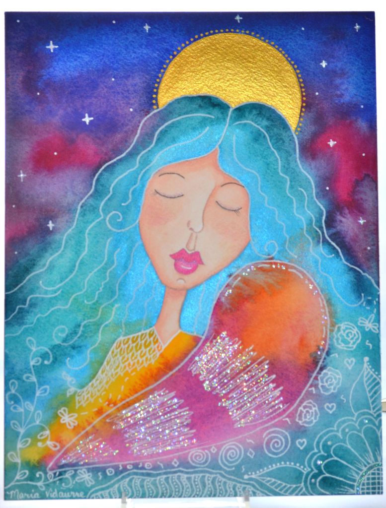 I tried something new and made a smaller painting, Angel of Nature. She’s painted on 5″ x 7″ 140lb Watercolor Paper with professional paints. She is bright, cheery and made with lots of love 💖