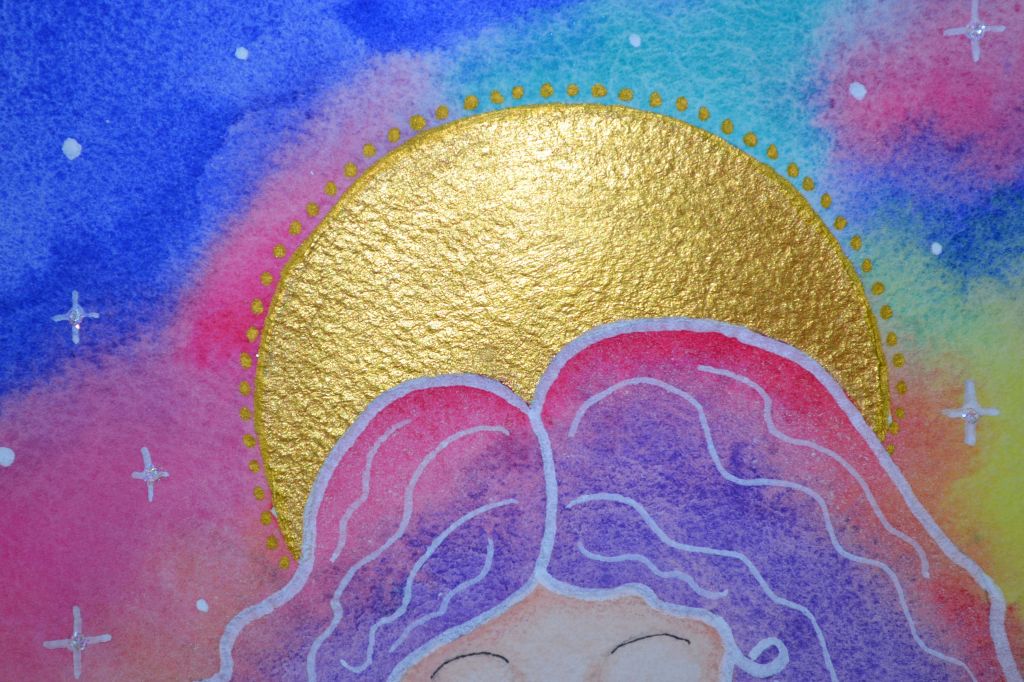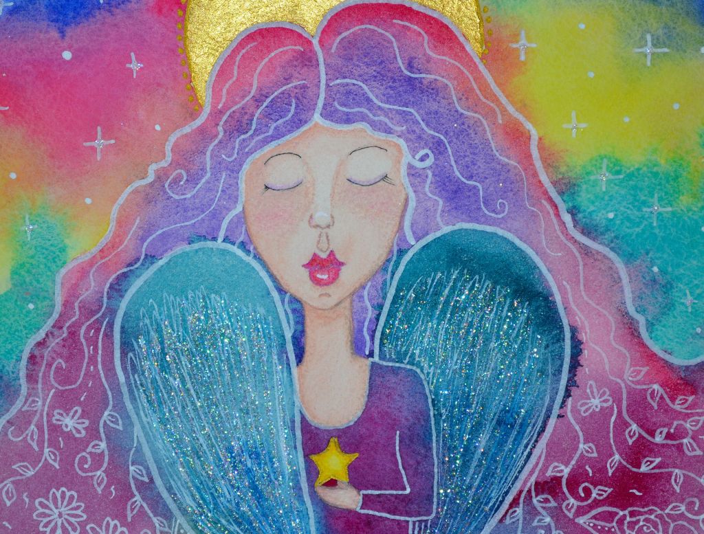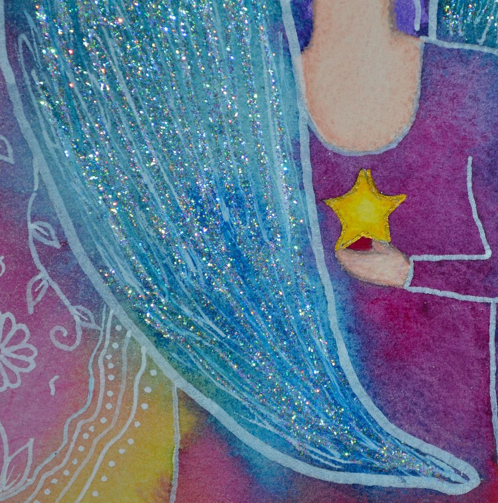 My newest Star Angel painted on 8″ x 10″ 140lb Watercolor Paper. She’s painted with beautiful hues of blue, pink, purple and yellow. She emits visions of peace and tranquility and is made with lots of love!